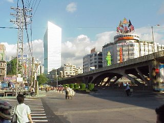 向こうに見える高いビルは東莞金融センター