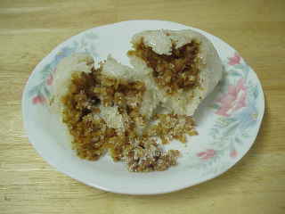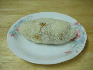 これが中国のおにぎり!! これは甘味のもの。かなり大きい。 外側は餅米(うるち米)でできている。