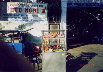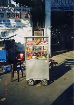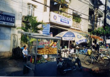 巷のフランスパン売りワゴン