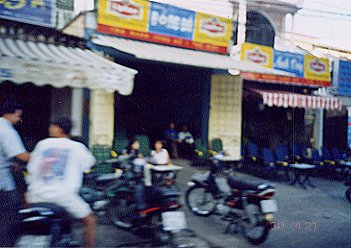 お店のイスはなぜかすべて通り側に向いている。